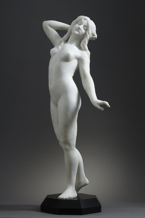 Dominique Alonzo (Début XXe s.), "Aurore", marbre blanc de Carrare, haut. 83 cm, sculptures - galerie Tourbillon, Paris