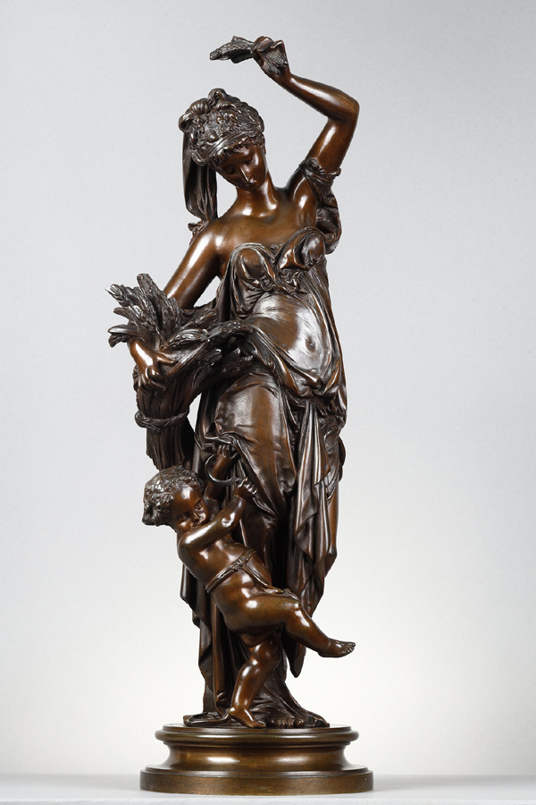 Albert-Ernest Carrier-Belleuse (1824-1887), "L'Eté", bronze à patine marron foncé nuancé, haut. 69 cm, sculptures - galerie Tourbillon, Paris