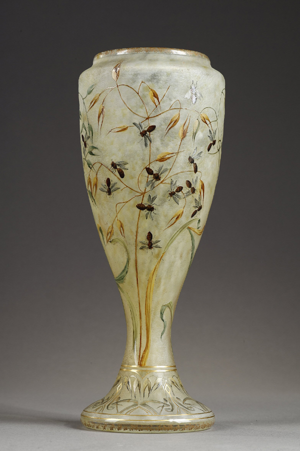 Daum, Vase dit "Avoine et mouches", Haut. 23 cm. sculptures, verreries - galerie Tourbillon, Paris