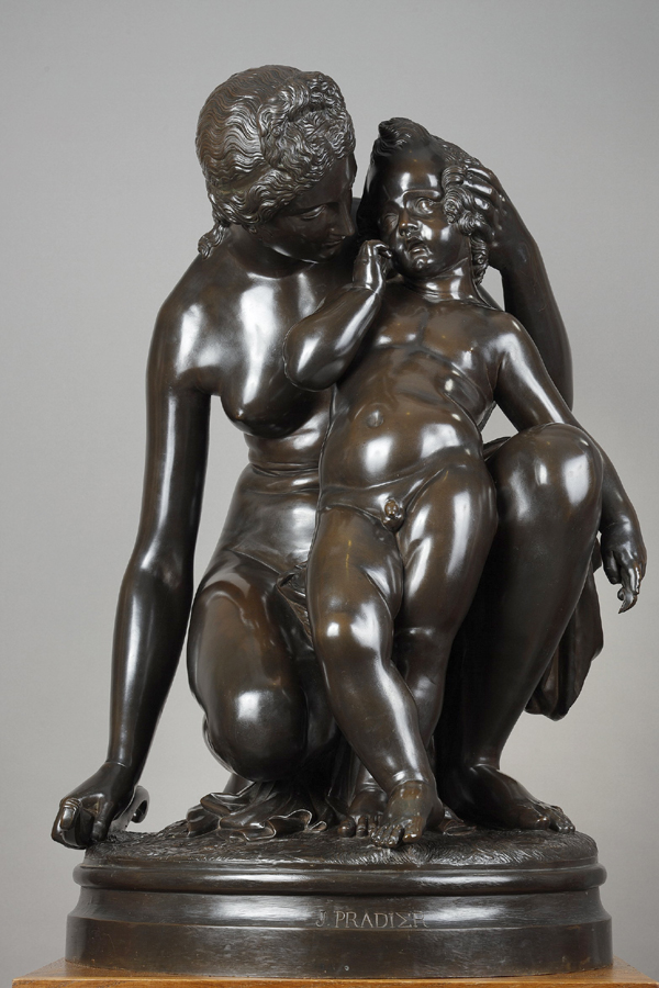 James Pradier (1790-1852), "Vénus et l'Amour", groupe en bronze à patine brun foncé, fonte Quesnel, haut. 96,5 cm, sculptures - galerie Tourbillon, Paris
